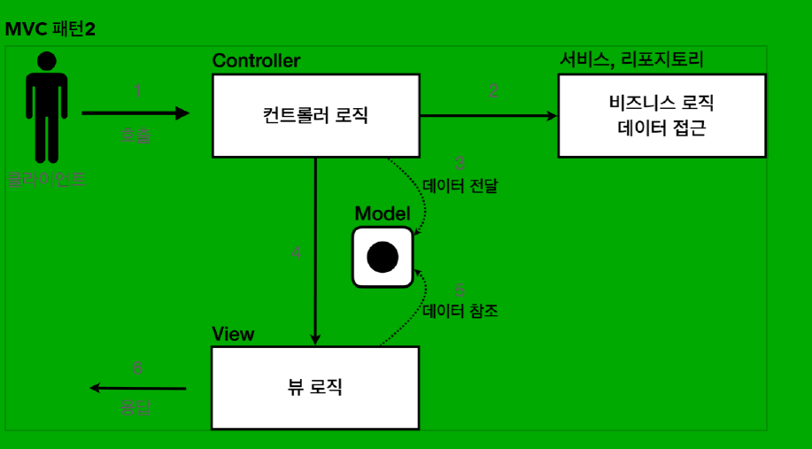 MVC 패턴2에서는 비지니스 로직을 호출을 하는 역할만 담당하게 된다.