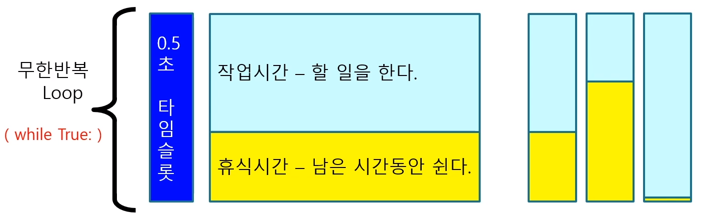 이 무한 루프에서 topic을 받거나 time triggering 같은 이벤트가 발생하면 callback 함수가 호출되지만 그렇지 않으면 sleep 상태가 된다.