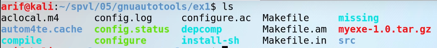 and than we type command "./configure" and then "make dist" we will get myexe-1.0.tar.gz