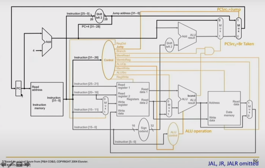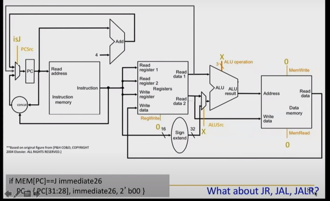 with isJ mux, if is not jump we just add 4 to given PC , if it is jump we take top 4 bit from PC + bottom 26 bits from instruction. and update PC , if it is JR we take our next PC from our register.