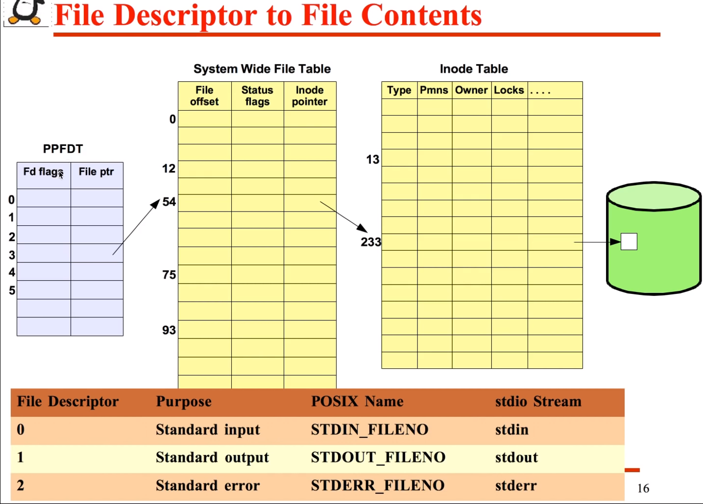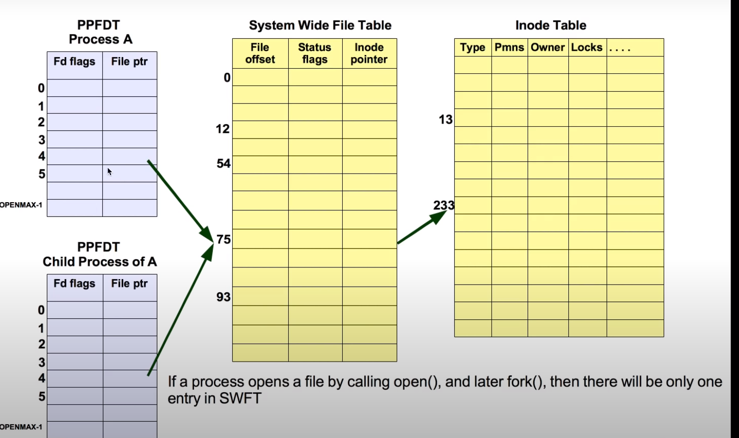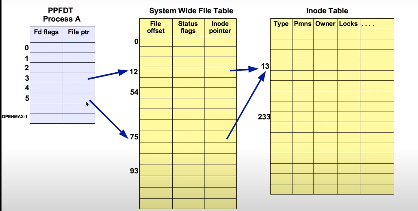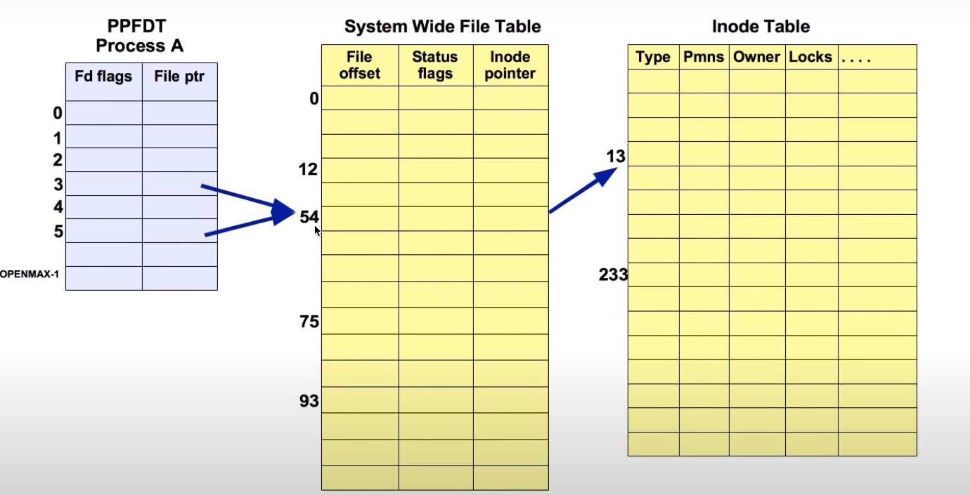 per process file descriptor table (PPFDT) = every process have their own PPFDT
