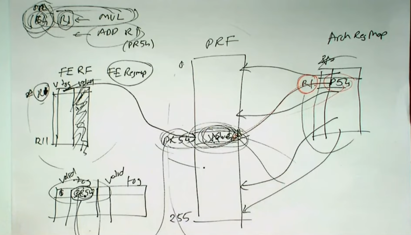 Frontend Register File are used for renaming , Architectural register file is just pointing to PRF if instruction become oldest after finsh.