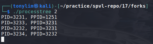 fprintf(stderr,"PID=%ld, PPID=%ld\n",(long)getpid(), (long)getppid());