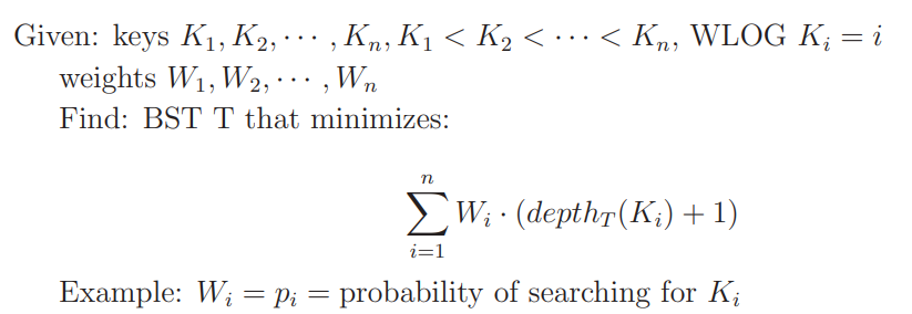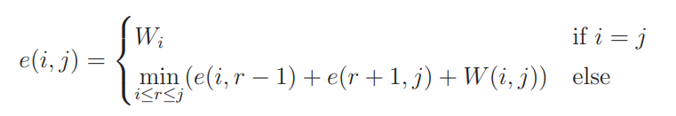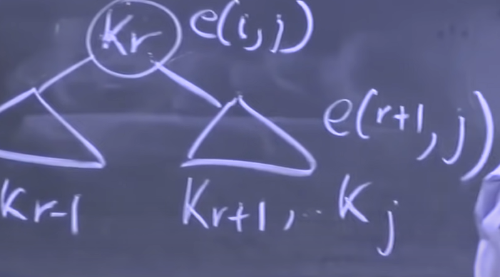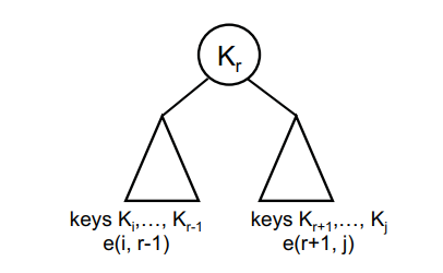 e(i,j) = cost of optimal BST on Ki, Ki+1 ... Kj