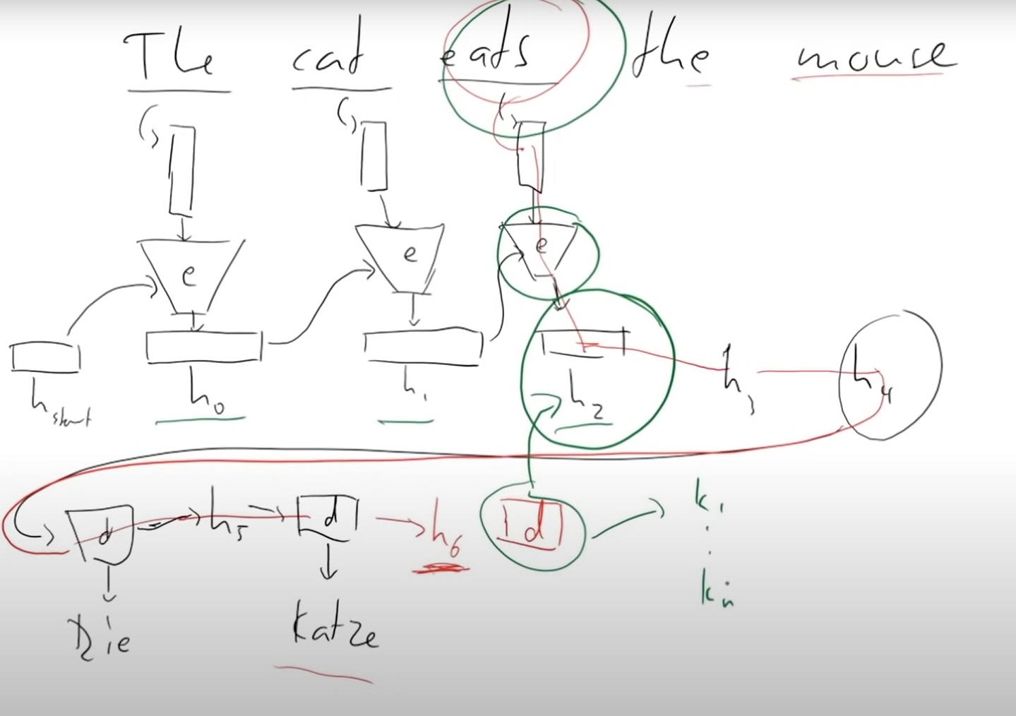 top right attention = 3 connection going into it (key, value = encoding part of source sentence) , (query = encoding part of target sentence)