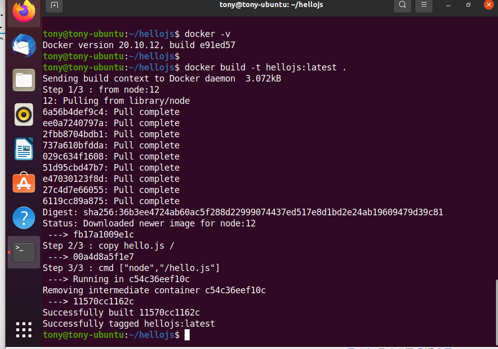 총 3가지 step으로 실행이되었다. base image인 node를 다운받고