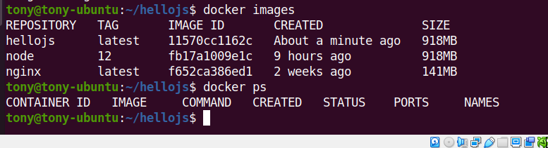 만들어진 container image는 docker images 명령어를 통해 확인이 가능하다