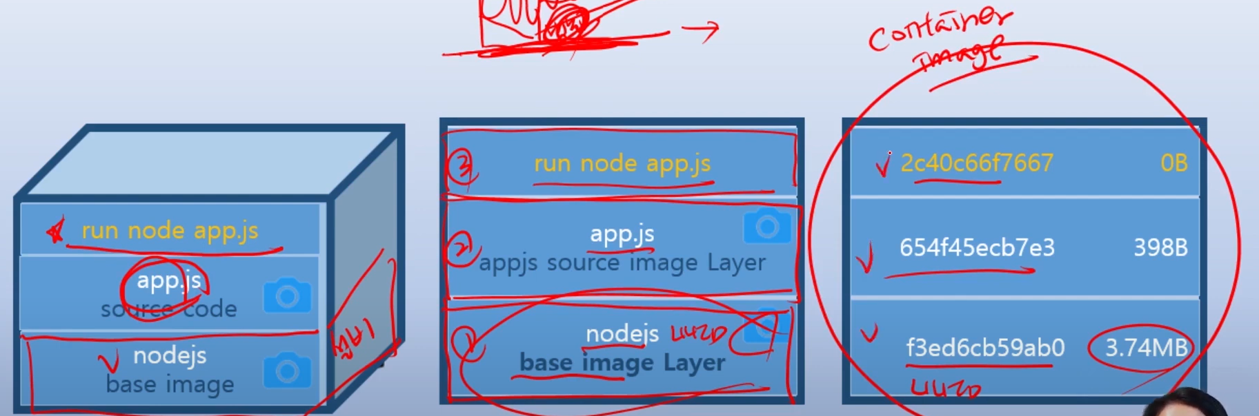 dockerfile 로 baseimage + source code + command가 준비가 되었다