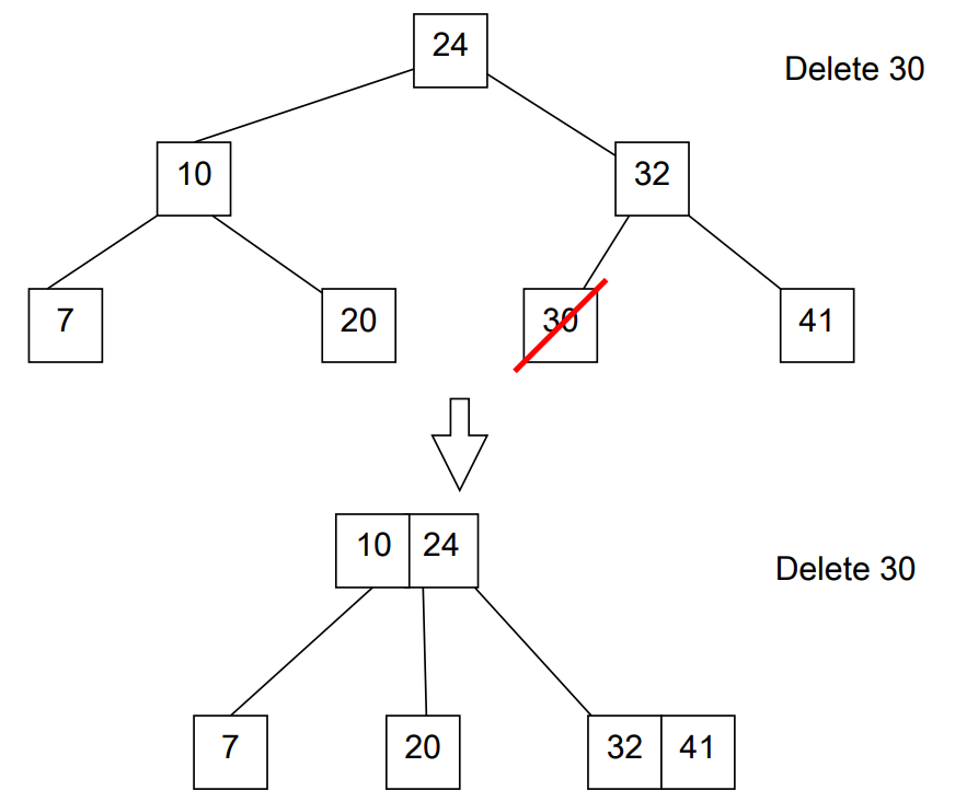 1-1. if there is enough sibling's number of keys, which is at most 1 bigger than the minimum. you kinda rotate with parent key so sibling key goes to parent node and parent key goes to underflow node.
