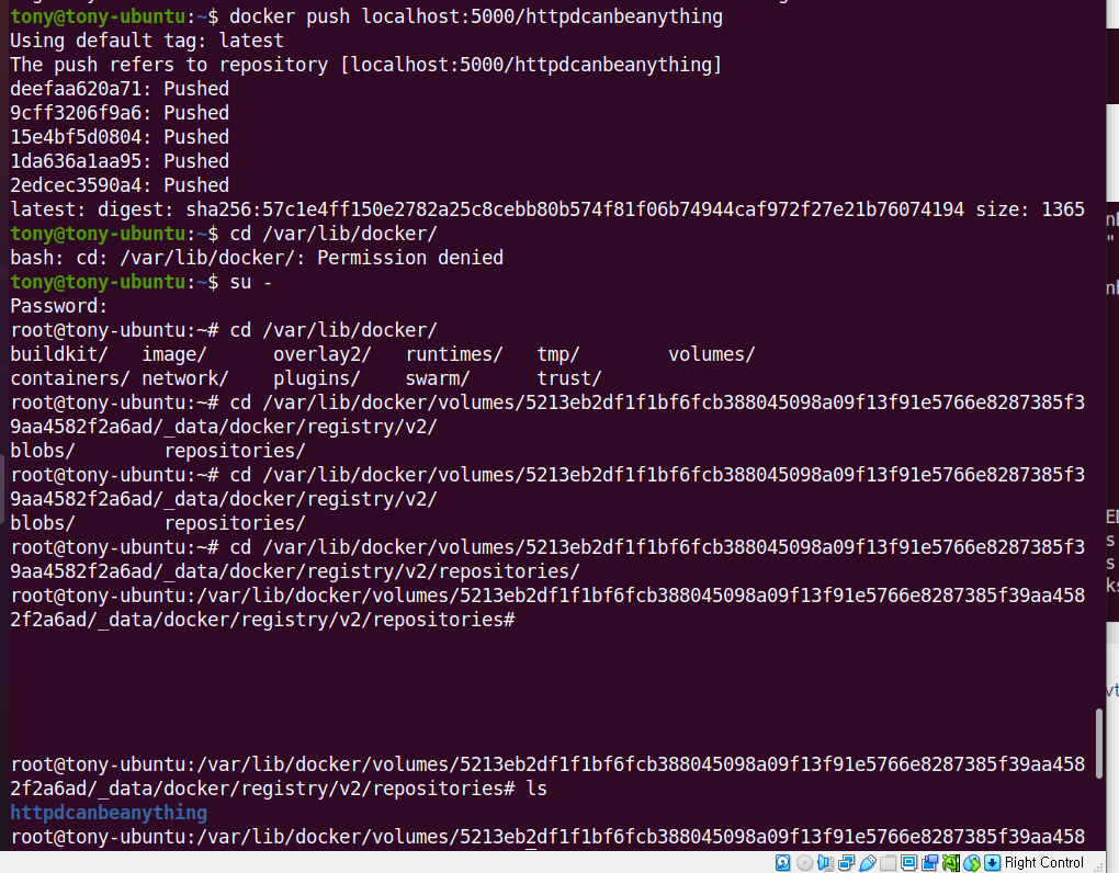 굉장히 긴 숫자는 컨테이너 저장소 이름이다. 이 아래 docker가 있다. 더 아래 들어가면 repositories 에 컨테이너가 존재한다.