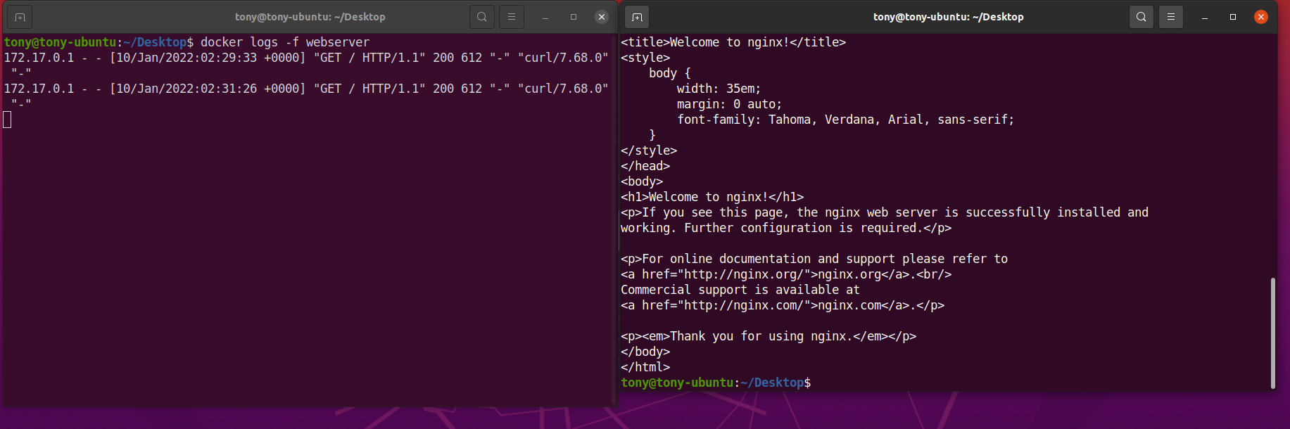 -f option을 통해서 다른 터미널에서 webserver의 로그를 console에 출력하고 있다.