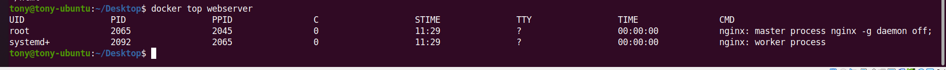 해당 webserver 컨테이너에 무슨 프로세스들이 돌고 있는지 top 명령어를 통해 알 수 있다.