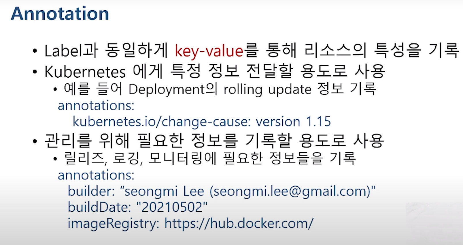 ingress , deployment 같이 특정 resource에 정해진(key) annotation 도 존재한다.