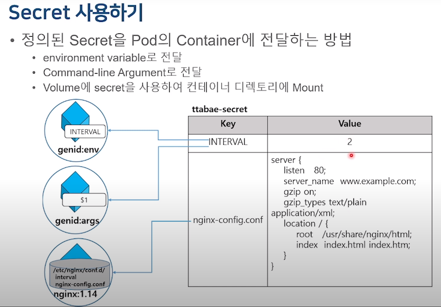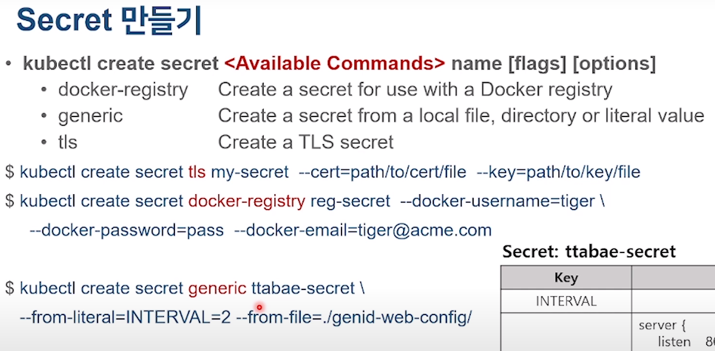 ConfigMap이랑 똑같이 3가지 방법이 존재한다.
