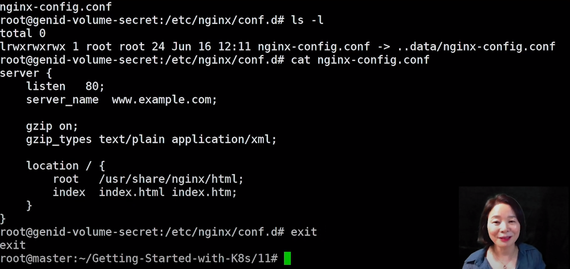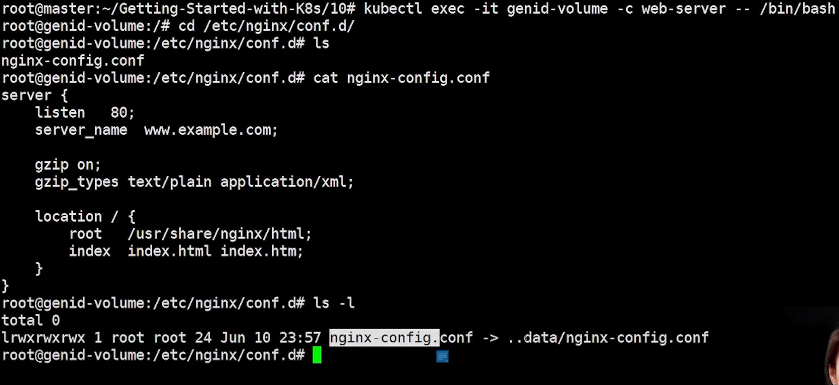 pod안에 들어가서 확인해보면 symoblic link 즉 configMap을 참조하는 것이다.