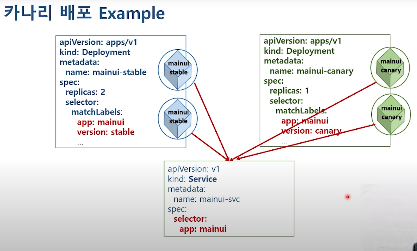 이런식으로 같이 끼워팔다가 아무 문제없으면 selector 를 변경하여서 새로운 pod만 사용이 가능하다.