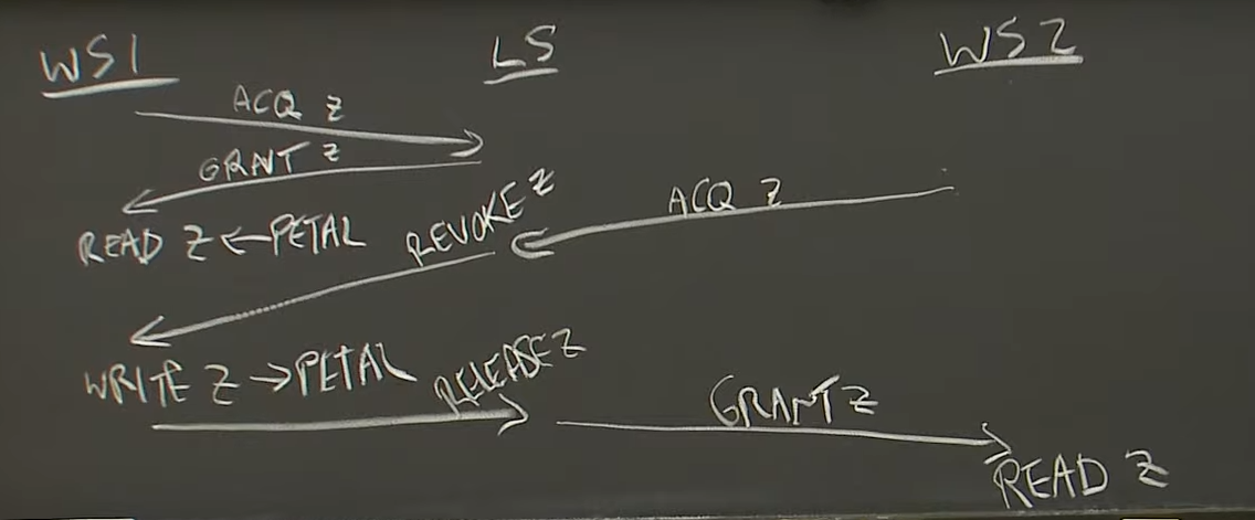 3. ws1 write to Z -> commit to petal -> lock become busy to idle -> respond to revoke Z