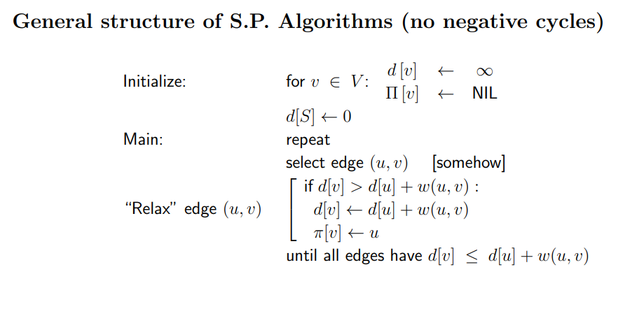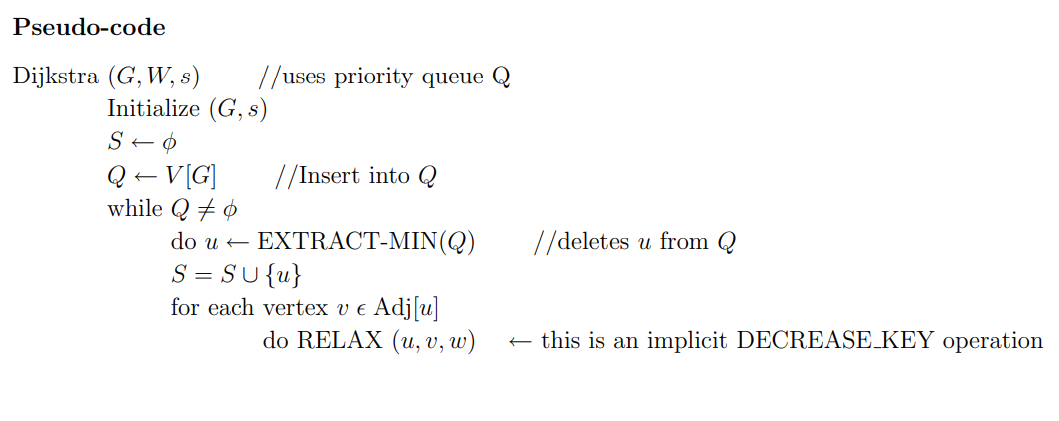 in case of dijkstra we pick the edge that has the minimum priority (in this case d[u], the current shortest distance from source). dijkstra works with cycles but all the weight have to be non negative.