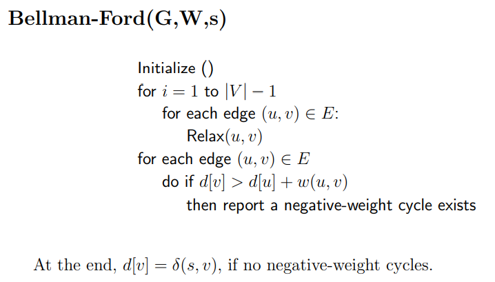 essentially we are starting from all of vertices and relaxing one by one. after the first iteration if there are any edges that can still be relax the graph has negative cycle.