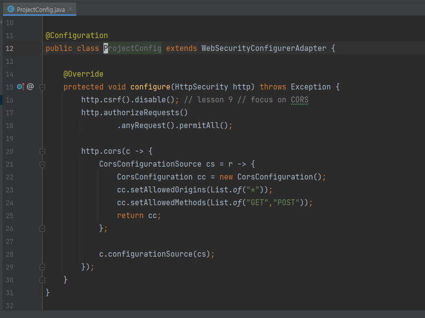 cors can be configured jsut like csrf with lambda