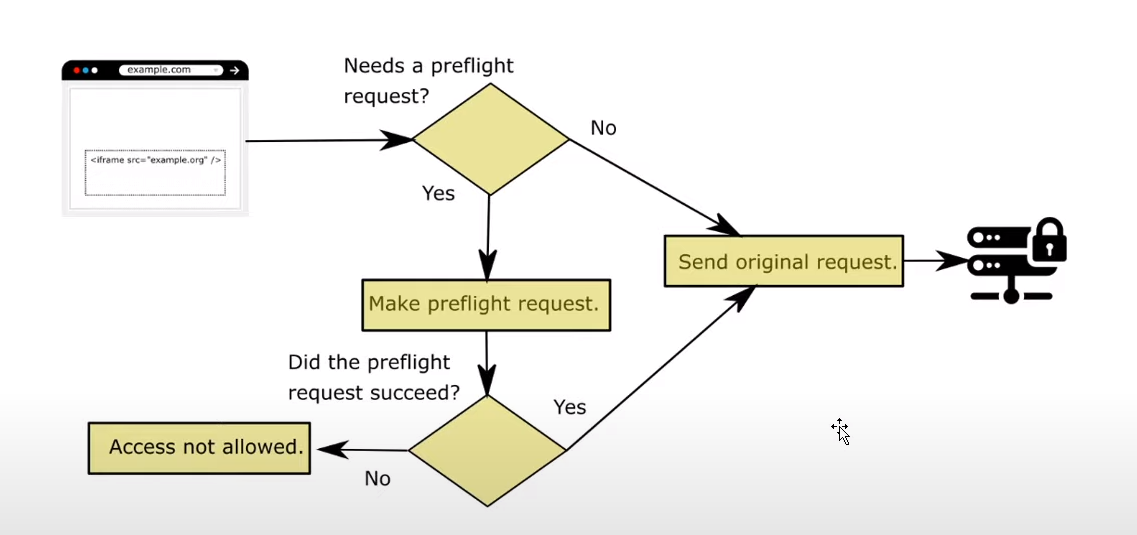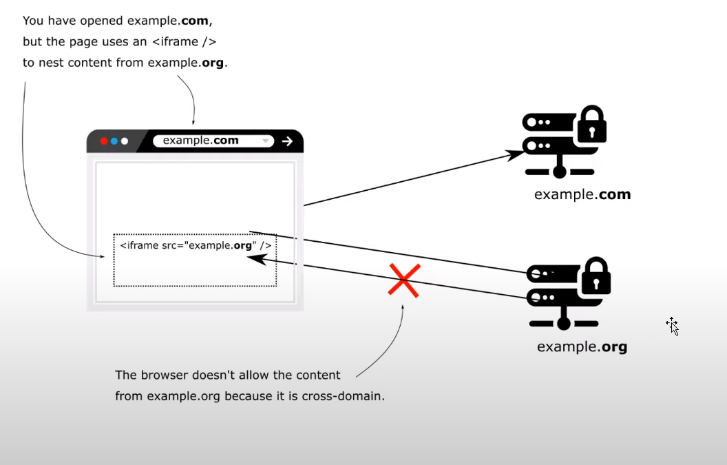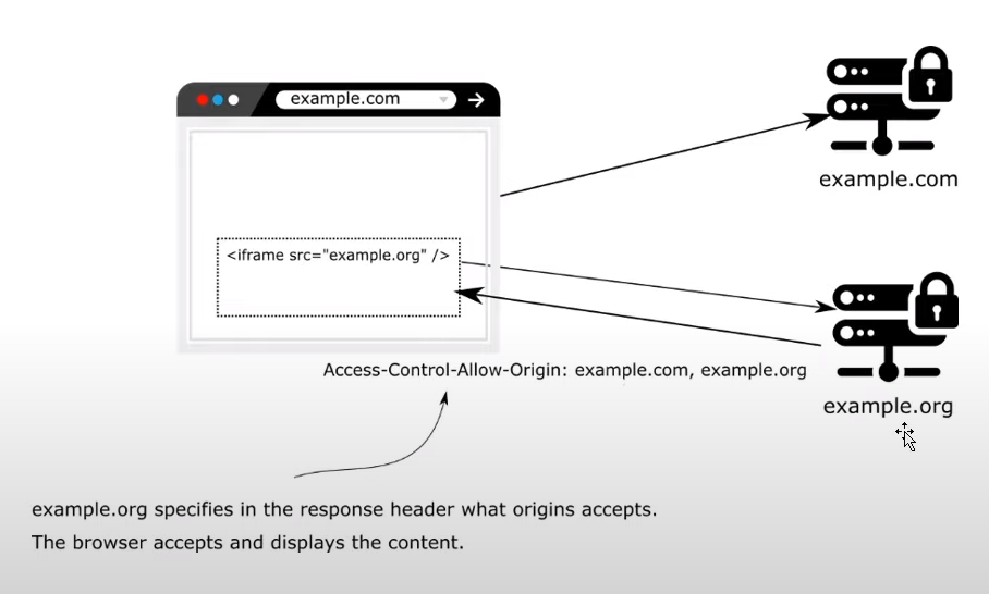 example.com -> example.org (process request) send response -> browser won't allow because domain is different from example.com -> throw error