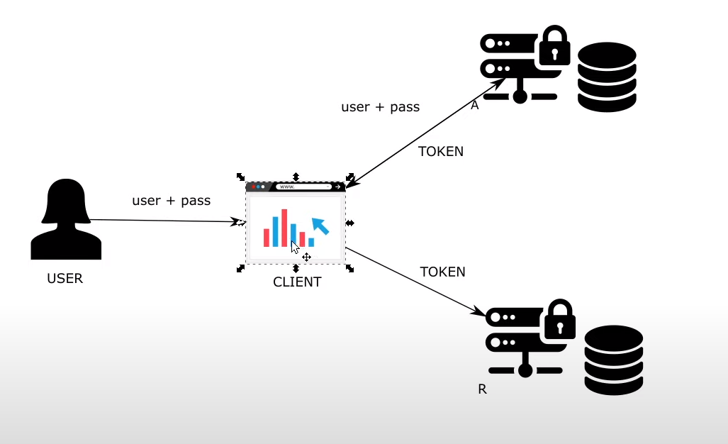 user authenticate to authentication server with username and password -> client receive authroization token from server by given redirect url(go back to client)