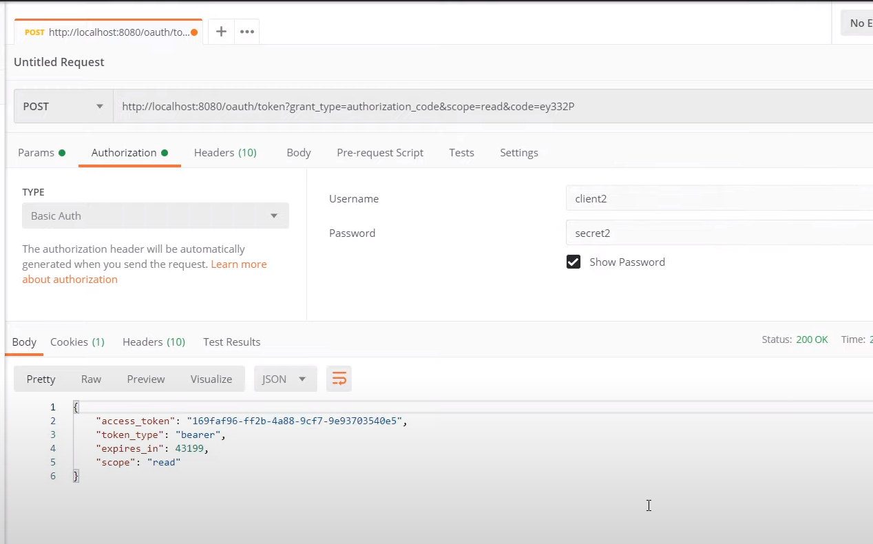 this request is for client1 (password grant type)