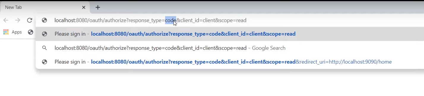 client send request = code means we will use authorization_code (difference from implicit)