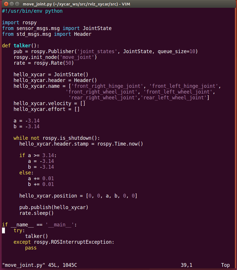JointState 형식의 메세지를 저 모형차에게 topic으로 개속 쏴준다.