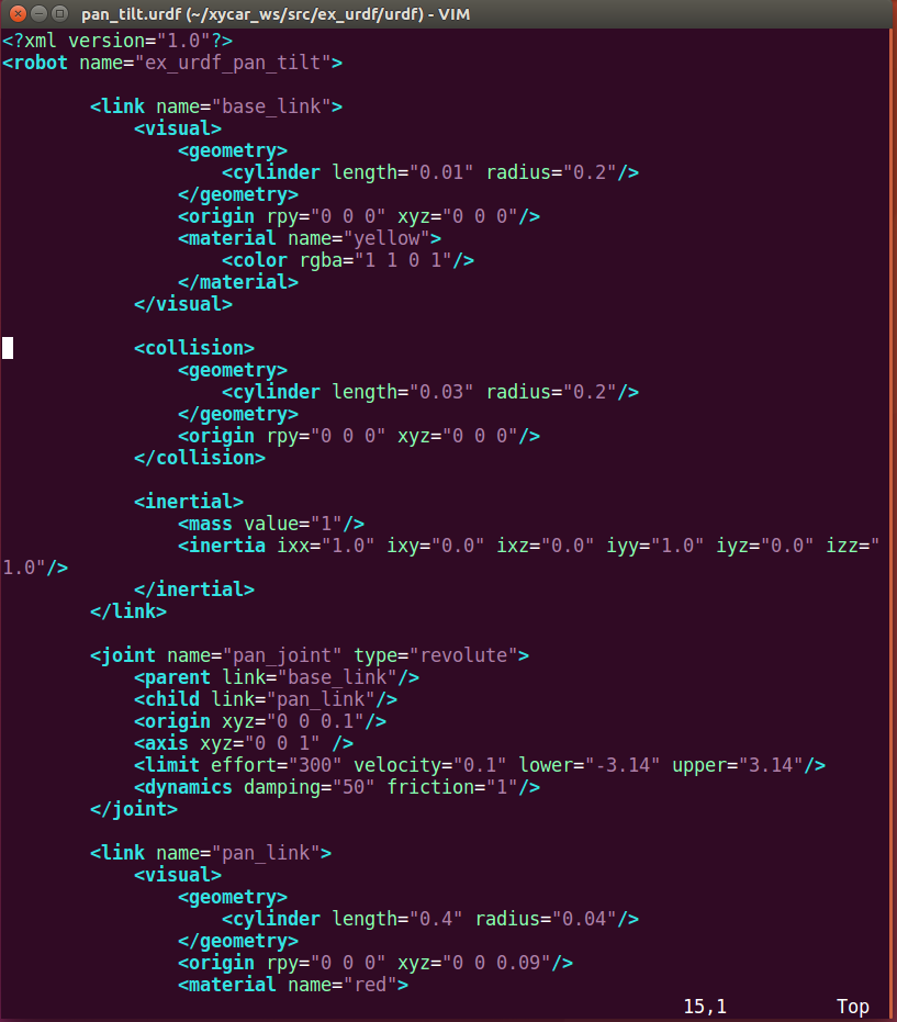 <origin> == 고정축을 기준으로 link 형상의 roll, pitch, yaw 위치를 라디안으로 나타내고 x,y,z 좌표 위치를 미터 단위로 지정함