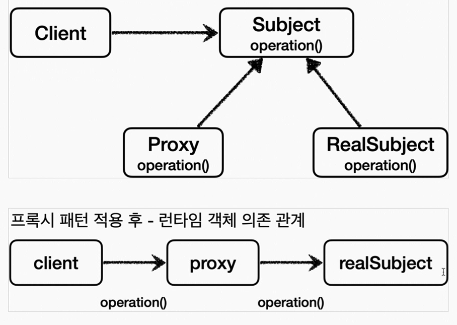 클라이언트는 주입받은 Subject의 메소드를 호출할 뿐 안에서 뭘하는지 알 수 없는 상황이다.