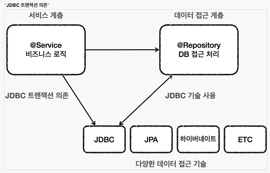 jdbc 에서 jpa 로 변경하게 된다면 서비스 계층의 tx 로직까지 다 변경해야한다.
