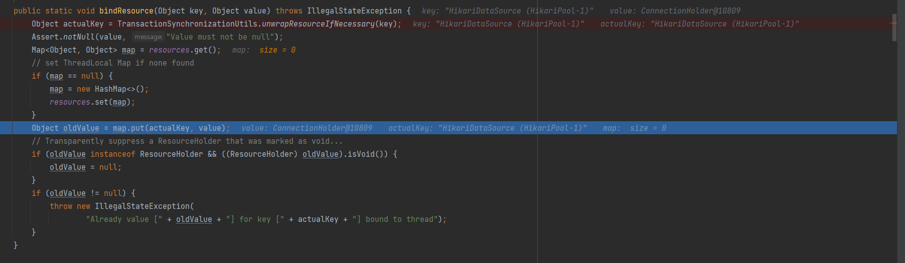private static final ThreadLocal<Map<Object, Object>> resources =