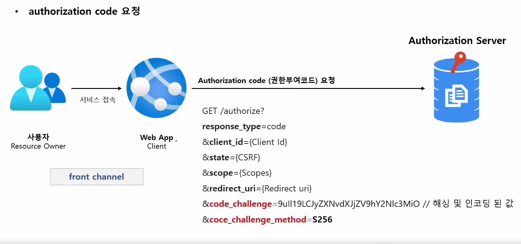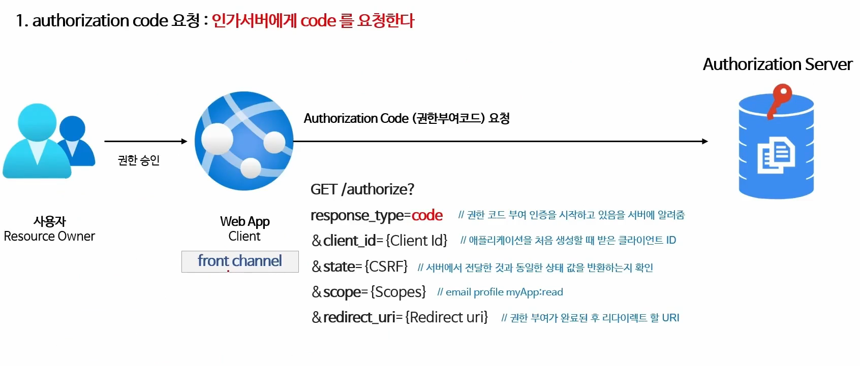 response_type = 앱이 권한 부여 코드흐름 시작하고 있음을 인가서버에 알려준다.