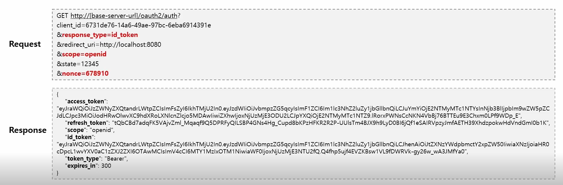 request에 포함된 nonce가 response JWT claim 에 동일한 값이 들어 있는것을 Client에서 확인하고 인증을 해야한다.(Implict 요청일 경우 필수 nonce를 넣어줘야함)
