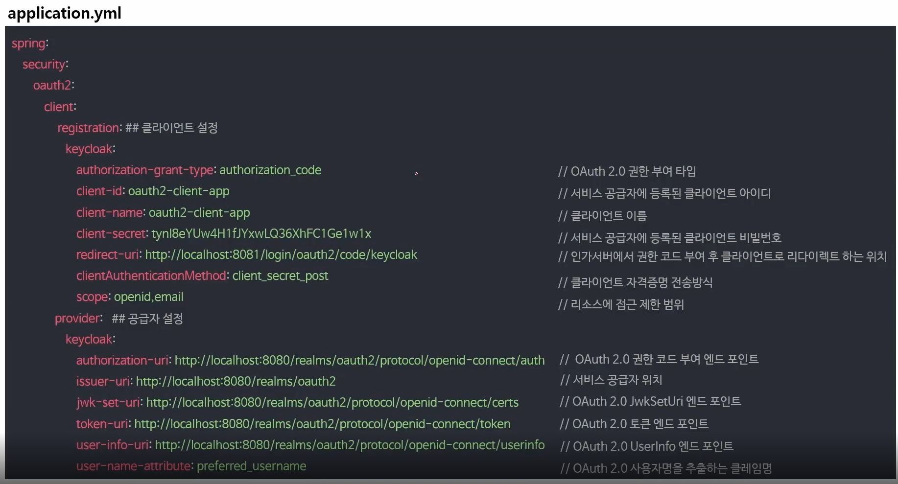 Client, proivder 정보를 가지고 있는 repo를 만들고 기본적인 SecurityFilterChain을 만들어준다.
