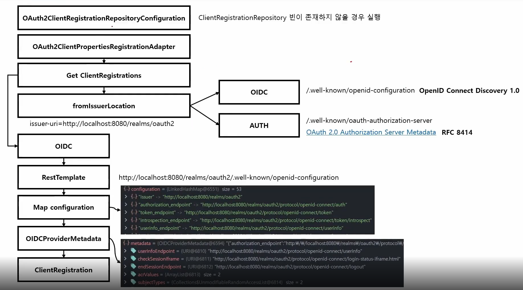 ClientRegistration은 Open ID Connect Provider 의 설정 엔드포인트나 인가 서버의 메타 데이터 엔드포인트를 찾아 초기화 할 수 있다.