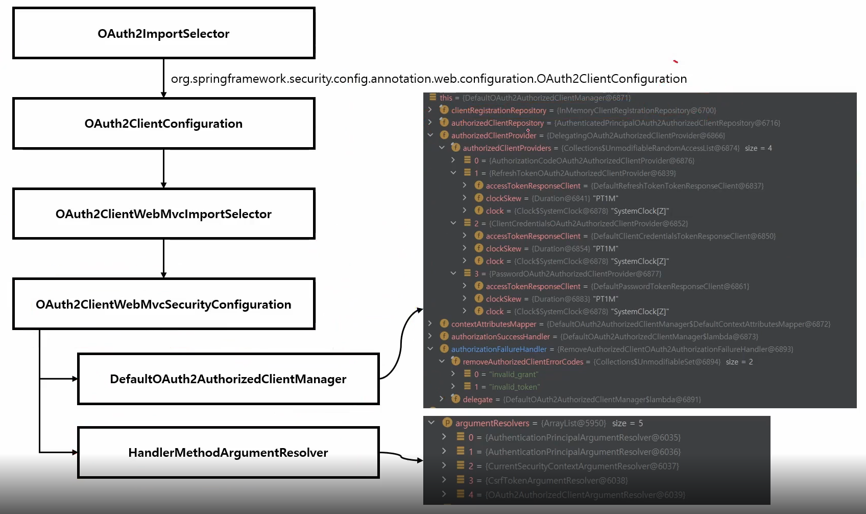 OAuth2ClientWebMvcSecurityConfiguration 안에 DefaultOAuth2AuthorizedClientManager는 권한부여 요청에 흐름안에서 추가적인 작업을 담당하게 해주는 클래스들을 가지고 있다.