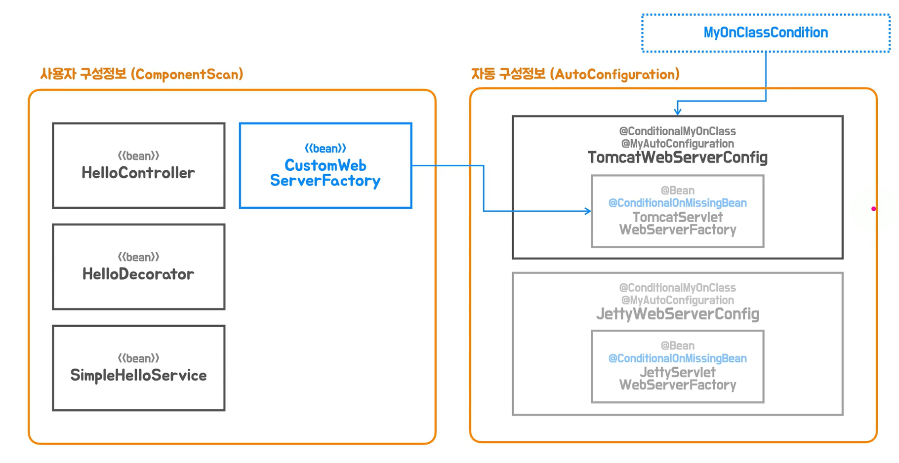 자동구성정보를 등록하는 시점에서 @ConditionalOnMissingBean이 유저구성 정보랑 겹치는게 있는지 확인할 수 있다.