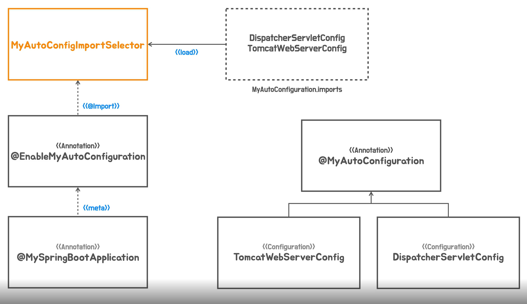 스프링은 여러 @Configuration중에 필요한 클래스를 주어진 설정에 맞게 빈으로 등록한다.
