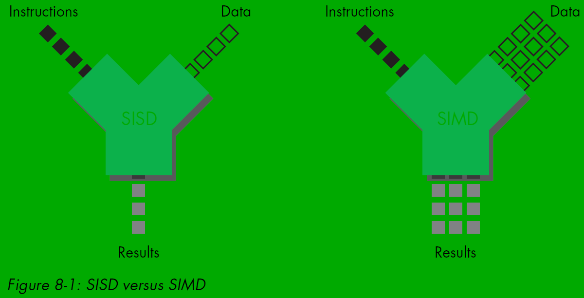 2. operate on large data files that are streamed from main memeroy. (need for large bandwidth)