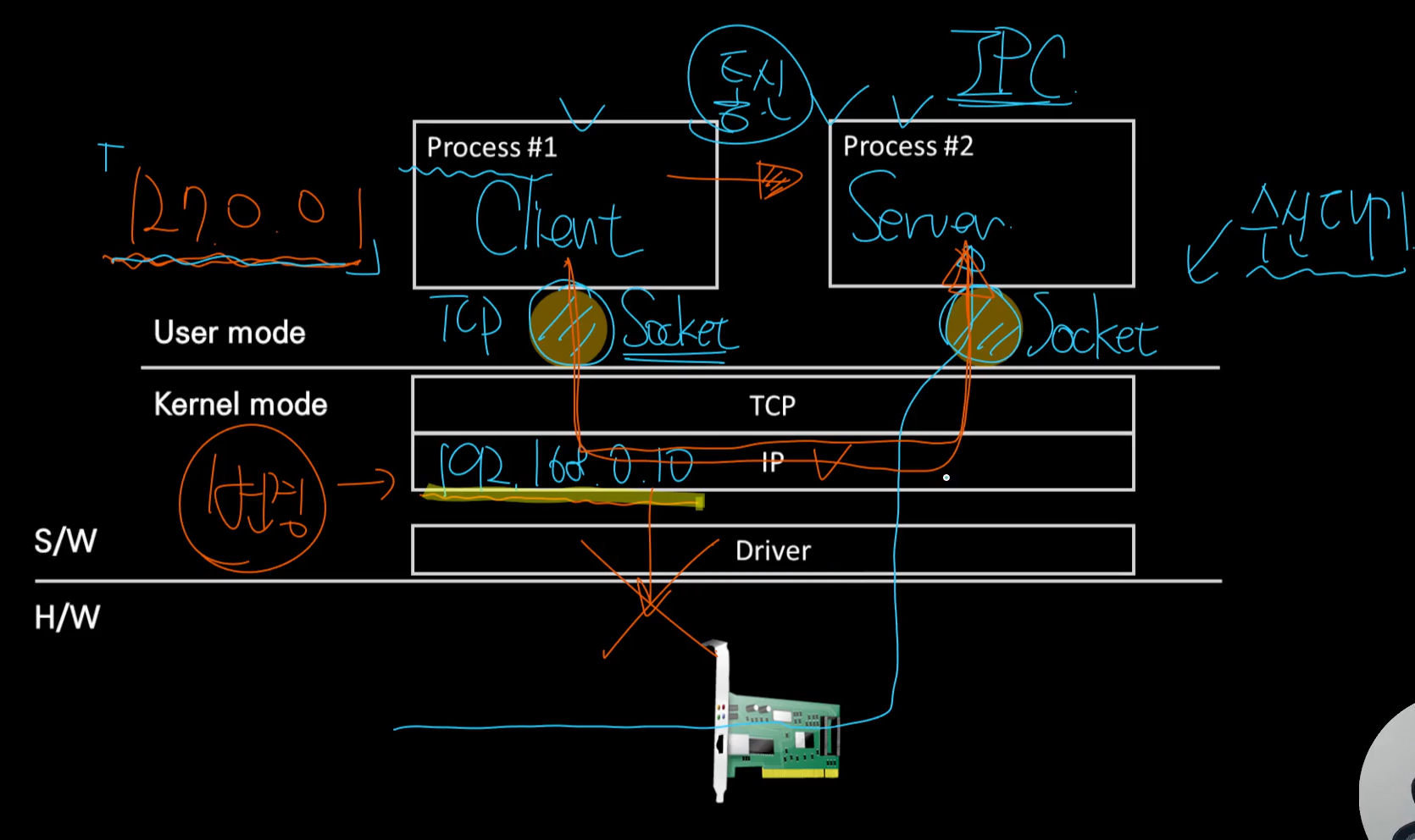 이때 실제로 packet이 Driver,NIC까지 가지 않는다.