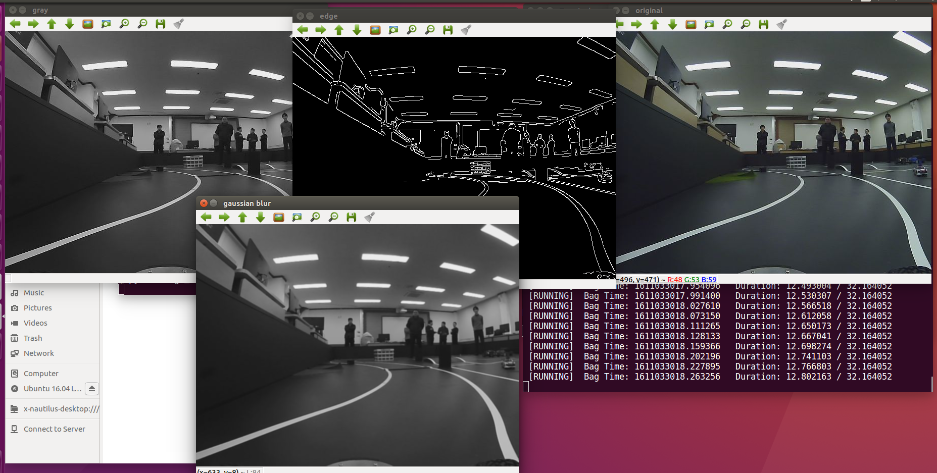 작동방법은 위의 edge_cam.py를 실행 시킨후 rosbag play 를 통해 토픽을 흘려보내주면 작동합니다.