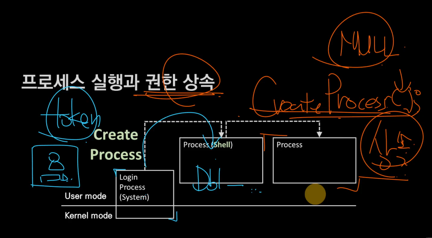 - 탐색기를 통해 새프로세스가 실행될 때마다 권한 상속