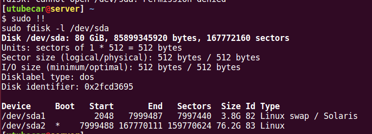 partition type == 82 (swap partition)