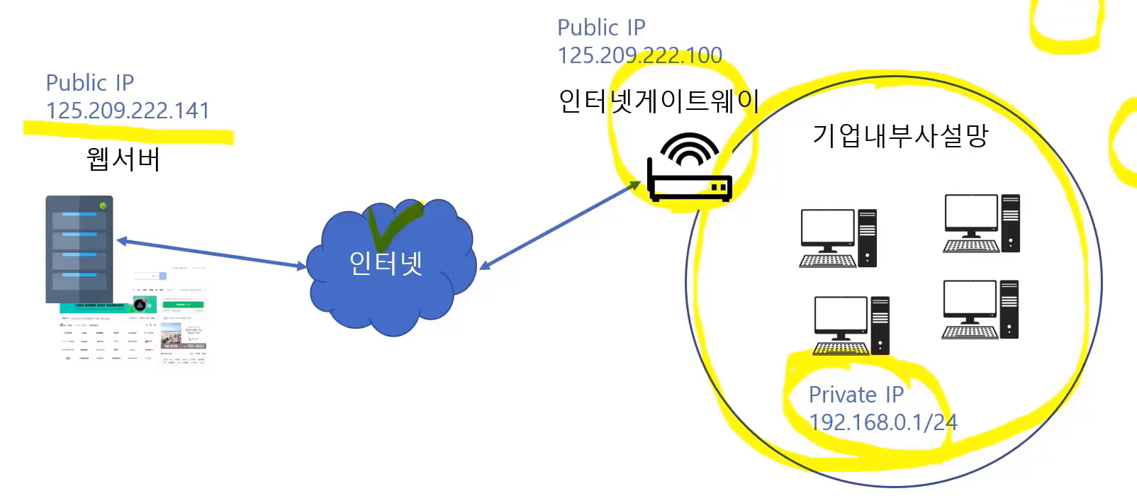 퍼블릭 IP = 인터넷 연결에 사용하는 IP