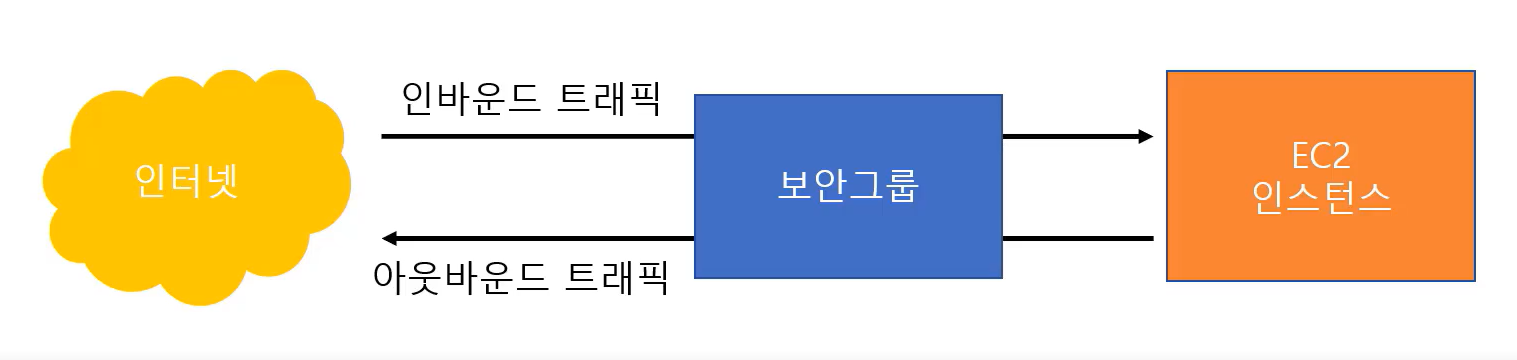 - EC2 인스턴스에 대한 인바운드 및 아웃바운드 트래픽을 제어하는 가상 방화벽 역할