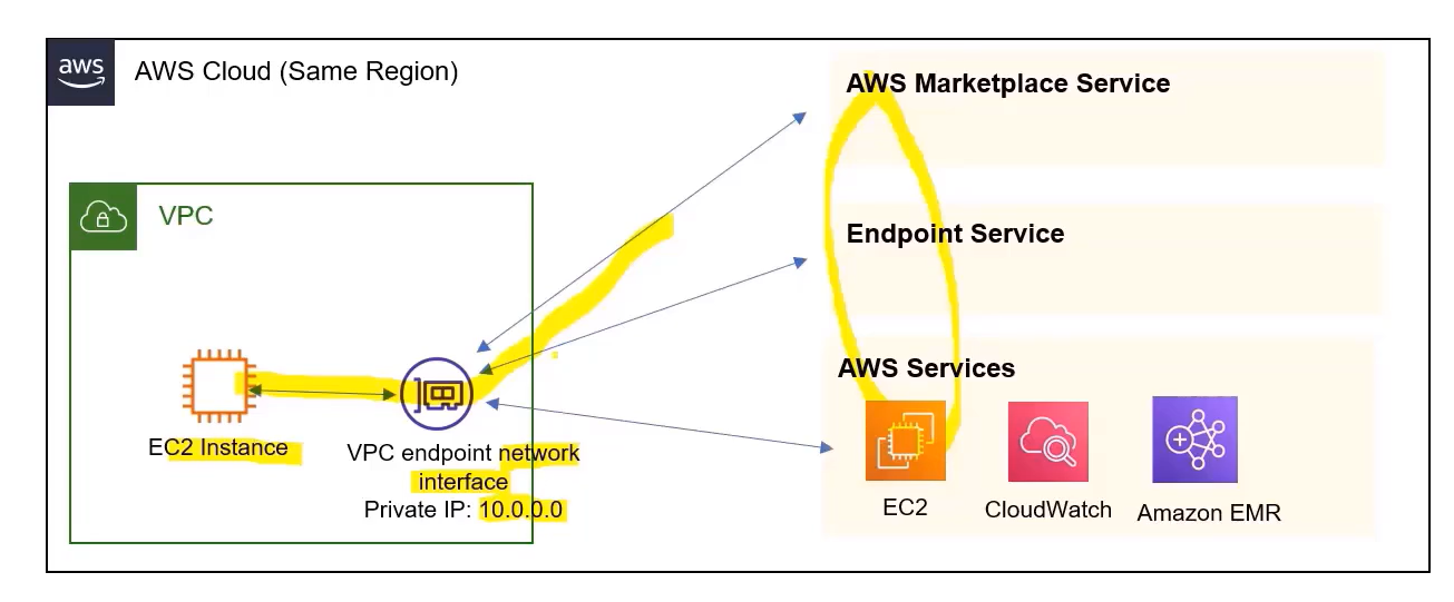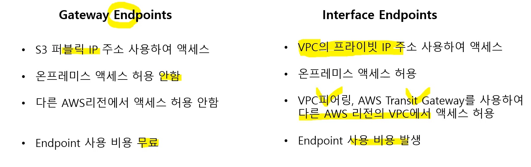 - 인터넷을 통하지 않고 AWS 서비스에 프라이빗하게 연결할 수 있는 VPC 의 진입점