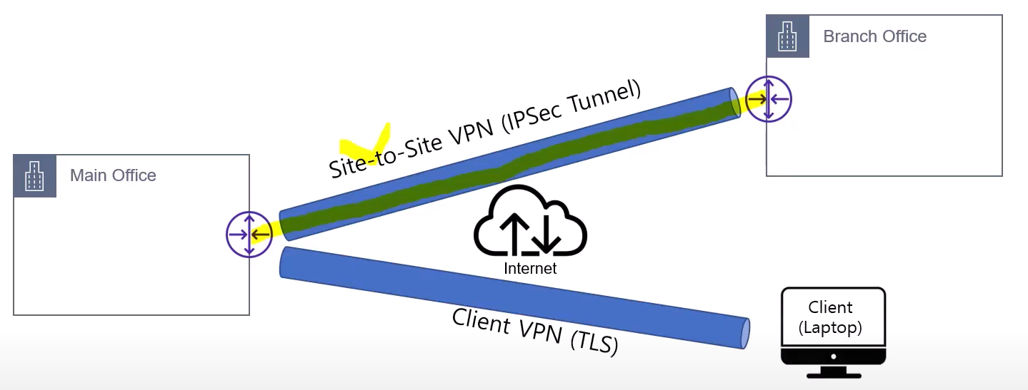 - IPSec 암호화 프로토콜을 사용하여 AWS VPC와 온 프레미스간에 프라이빗 네트워크를 구성