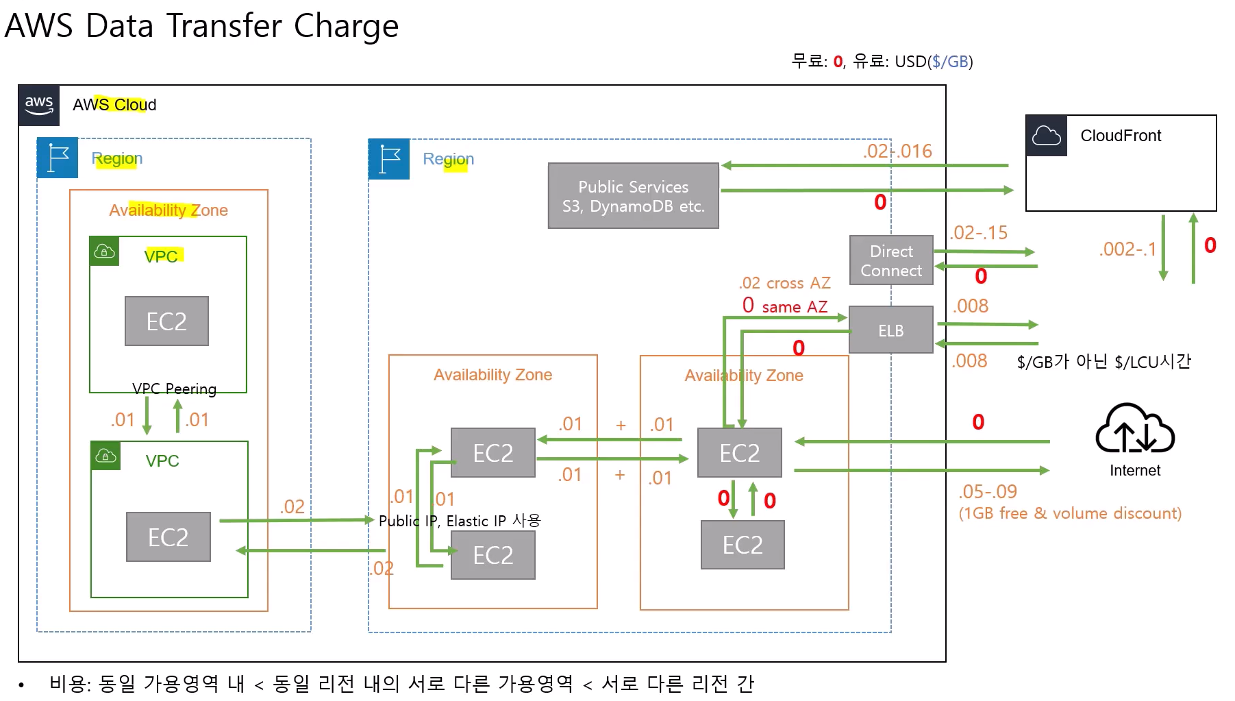 - 서로 다른 region 간에 트래픽은 0.2 달러